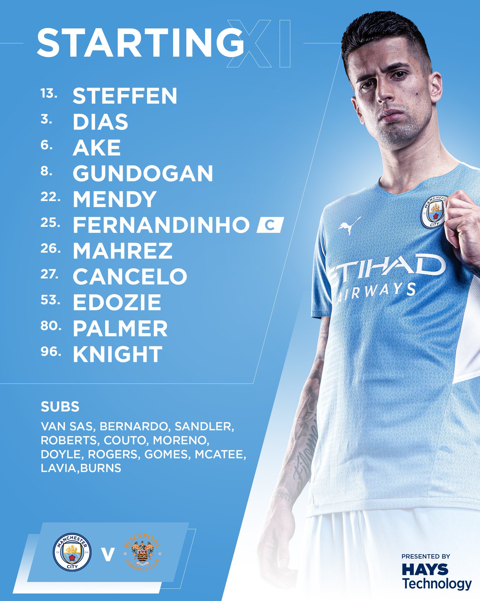 Manchester City On Twitter Taking On The Tangerines Xi Steffen Cancelo Dias Ake Mendy Fernandinho C Gundogan Palmer Mahrez Edozie Knight Haysworldwide Mancity Https T Co Axa0kld5re Https T Co O71onh9h0n